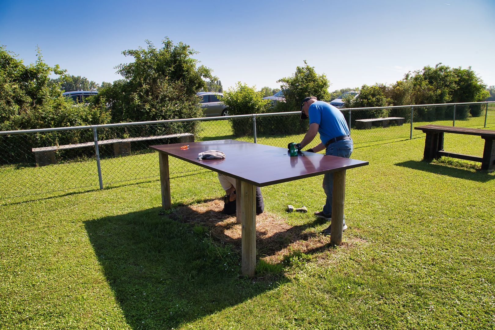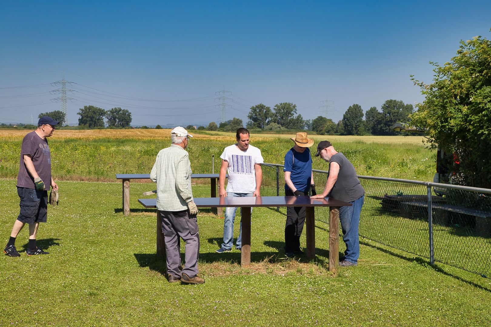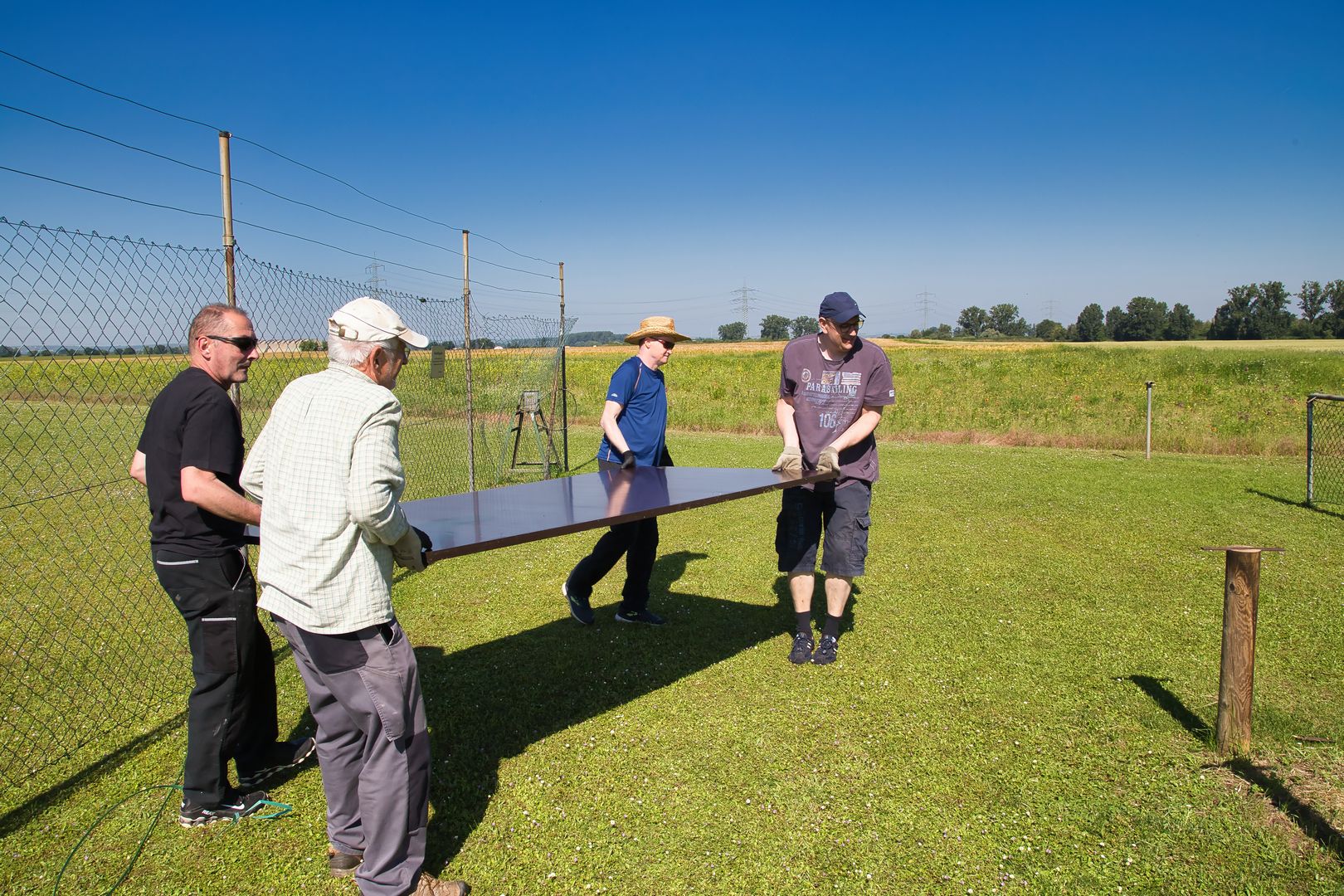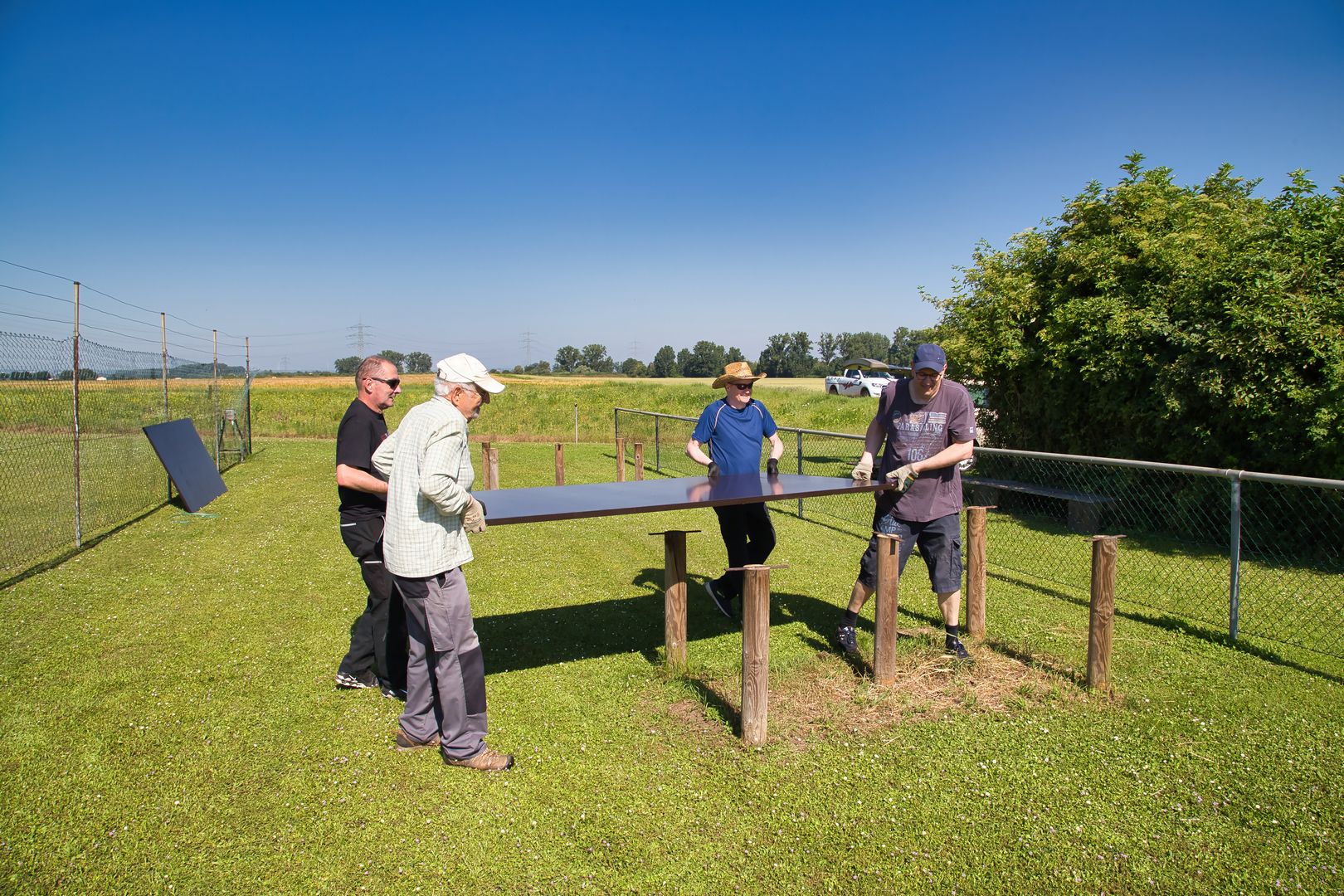Wieder ein sonniger Tag. Wieder mal was geschafft. Heute haben wir uns aufs Neue versammelt, um unseren Flugplatz ein wenig aufzupeppen. Zusammen haben wir neue Tischplatten montiert, die Sitzbänke abgeschliffen und neu gestrichen. Dazu haben wir noch den Zaun repariert und den Büschen einen schicken Schnitt verpasst. Dafür danke ich, im Namen des Vorstandes, allen Mitgliedern, die heute geholfen haben.